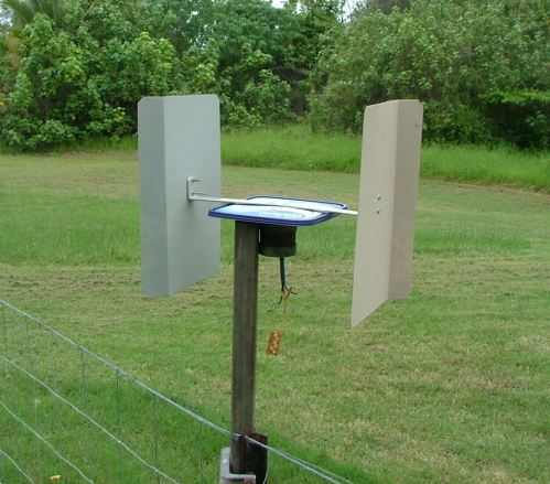 Vawtman ... The blades are 3 metres (not 9, as you stated). For the uninitiated 3 metres translates as 'about ten feet'. A standard sheet of corrugated roofing iron covers 762 mm (for you, two foot six, roughly) this gives a blade dimension, over-all, of about ten feet by seven foot six which is way outside the recommended ratio of dimensions but works all the same. If you want to go all pedantic, you might overlap the sheets a little more to better approximate 1:1.618. As for "static pressure into torque', try holding a sheet of something light but large, say a sheet of 8ft by 4ft plywood, at an angle to a stiff breeze. You will shortly appreciate what that means. As for a picture, have a look at the first post in this topic. I'll agree the tower asthetics leave something to be desired, but the basic thing is there to see, albeit in the form of a small demo version. This one is mounted on a small washing machine gear box which originally drove a small electric motor as a generator to light up an automotive light. (Dimly, I must admit!) Avoid strong drink. It makes you shoot at tax collectors ...and miss. |