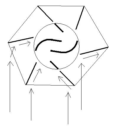 From the pic I could not see an increase of 3 times as possible all things being equal. Yet there may well be increases that warrant further looking in to. I like the idea of an increased capture area being applied to a reduced swept area. Unfortunately the sheer bulk of the design poses limits to many applications. I think many working examples will need to be made and reported on before one could tackle building one with confidence.