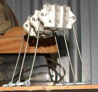 That looks great Gizmo. Do you use those elements in air, or submerged? But I really like the very neat way you have connected them in series. Other source of resistance wire might be from an old hair dryer, toaster, or Tangi type fan heater. These would run quite hot, especially without a blower going. But submerging the elements in water (or oil) will vastly increase the power sinking capability. The actual resistance wire itself should not be expensive. But I am sure most of us can fairly readily scrounge some for free with a bit of thought. At least you know that whatever it came from could support 240v across whatever length of wire is in there. That is a pretty good basis to start from. Cheers, Tony. |