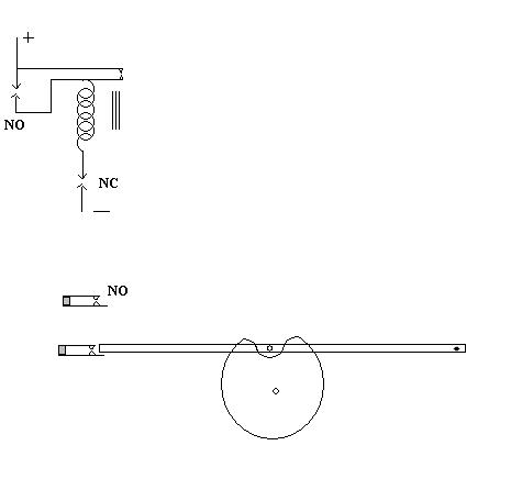 At low RPM the pin stays in contact with the cam and at the bottom of the stroke it touches and opens the normally closed contacts. At higher RPM the bar begins to 'float' and the pin loses contact with the cam and the bar no longer opens these contacts. At some point as the RPM increases the bar will float high enough to close the normally open contacts and when it does the relay will pull in and be latched by its own contacts.