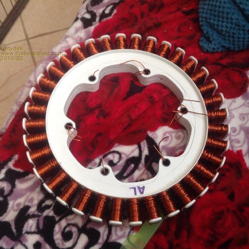 Nice rewire, but if you had decided to go with aluminum, I work like ryanm, "To me the whole idea of the smartdrive turbine is taking something that would have otherwise been thrown away and generating power with it." So did it like this: I cut my aluminum coil wire, scraped the coating back 1 cm, and crimped copper on it. I smashed the end of a 12 - 10 gage bare copper house wire, cut the end flat, soldered a multi strand copper wire to the round end, bent the flat end like a hook, doubled back the aluminum end, deoxed, and crimped them. Then glued it to the stator. The glue was 100% silicon bath tub caulking. The kind that hardens like rubber. Glues to rough surfaces, rubber mounts things for vibration, & conducts no electricity. It's water proof, but won't handle oil/gas/thinners/etc. I use it on circuit boards lots. The length of the copper wire was very short 1cm, enough to solder to and then crimp. The glue covered the entire connection, sealing, & holding everything in place. The crimping was done with channel lock pliers, because the crimp clamps hard on the TIP only. The deox was an anti oxygen goop for aluminum connections. The hammering flat was just flat enough to have a THICK flat spot to bend & crimp. Just practice on some other wire before you do your stator. Then the copper wires out can be connected or soldered the way you want, IF you or others want to try other freebee generators in the future, of course. It may be that aluminum stators is all we can get in the future. And since aluminum is such a big resistor, shorter wires might be best, so cutting or tapping the coils to increase watts out, might be the right route to go. I hope this helps some one, some where, some how. Bitdog |