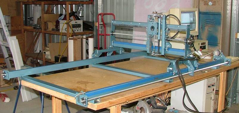 You should see if your friend wants to make fibre glass blades for the DIY windmill builders. I've been building a CNC router to make blades on, as well as other stuff. I fired it up today to check the motion systems, all ok but needs some tuning to get the speed up. The bed size is 1200 * 600, so its big enough to make a set of 3 blades in one go. I still need to buy a router for it, trying to find one thats quiet, a set of blades would take a couple of hours to rout, thats a long time to have a router screaming its head off.