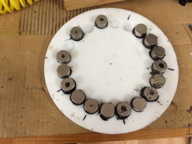 you can use all your mags on one larger metal rotor but you will need another steel rotor to rotate in sync with the mag rotor .