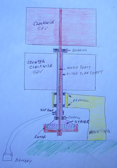 Good Idea in theory, but looks like a complicated nightmare to make. I don't like slip rings for a start. Good luck with it though.