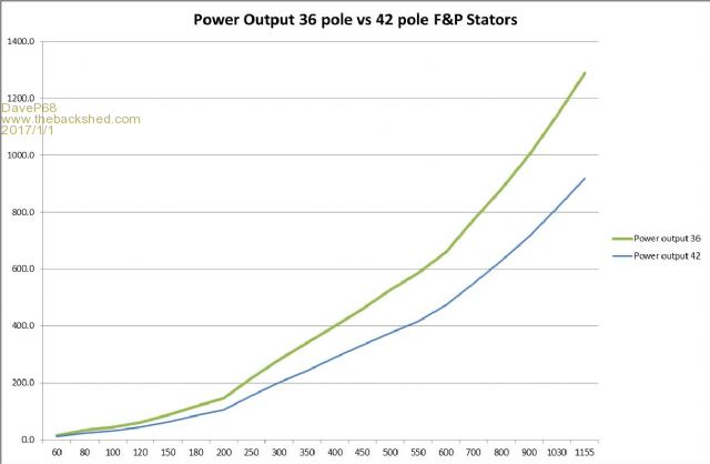 I would be very interested in seeing how a 42 pole stator can be configured to match this 36 pole stators (with black rotor cap) data or better it. I'm not referring to the modified 7 phase wired to use a black rotor cap as the wiring is quite complex pull off and once done is hard to reconfigure.