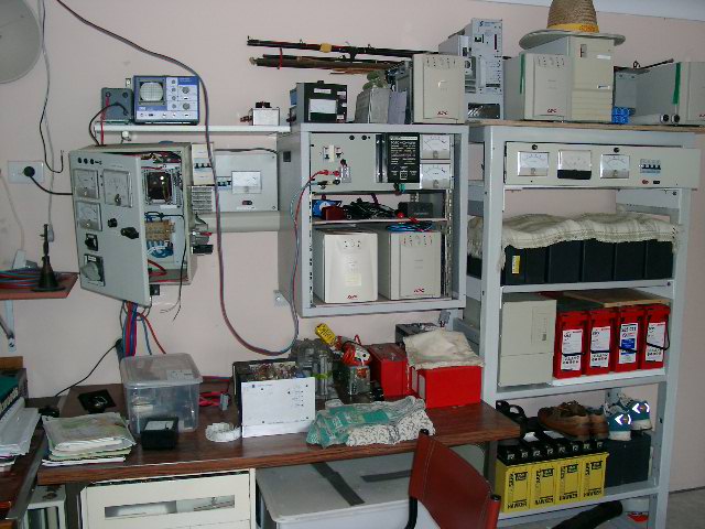 The black box in the middle rack is a 24-12v dc-dc truck converter-- good for 20 amps and I just tweaked the internal pot to allow 14.5v for charging a 12v bank ..