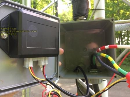 I thought folks might be interested to see our latest turbine addition. I added a linear actuator (well hidden behind all the weatherization efforts) which operates off the CC to furl the tail. This is not for normal running mode operation, but is set up to (softly) shutdown the system when the input voltage to the controller goes over a preset voltage, currently about 125V. So if a windy overcast day turns sunny, and we no longer need the power. It has a built-in potentiometer so the presets can be set, and triggered with one contact closure using one of the auxiliary relays. So far working pretty well. We'll see if it holds up thru all the different weather expectations. ~ks |