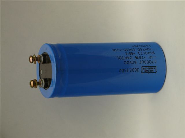 I have 6 each of 47000 mfd 60 Volt capacitors for sale and they have screw on terminals.