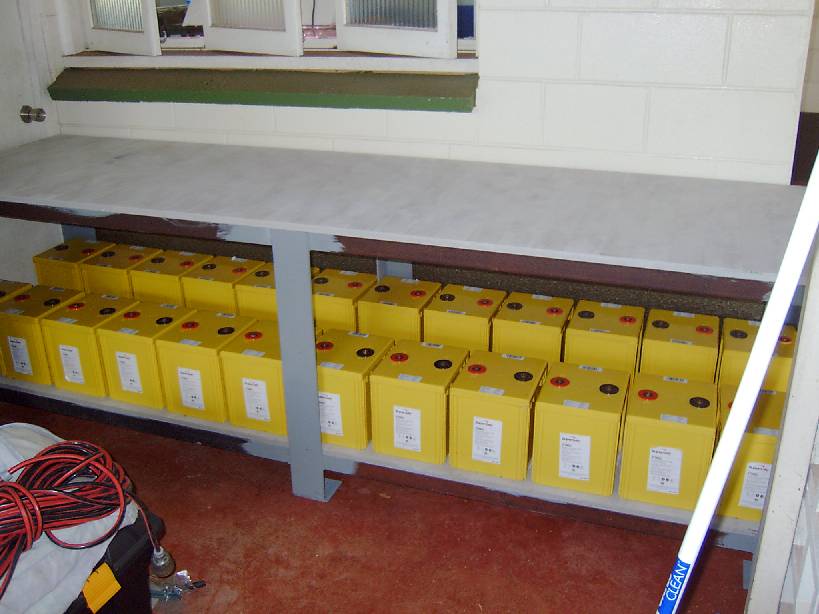These are first up in a list of RE type stuff up for sale. I'm going to list it all here first as I'd prefer to see it go to a good RE home. I bought these about 2 years ago, with intentions of a 48V system at home, but the reality of living in the burbs, time, other projects etc have kicked in. Rather than collecting dust here I'm sure someone else can put them to use. Would suit a 48V 500Ahr, 24V 1000Ahr or 12V 2000Ahr setup. 24x 2Volt 500Ahr EnerSys 2T500/2 AGM Cells. The sale includes about 26x tin? coated copper bus bars that I have cut to length and milled out to allow some slotted adjustment on the bolt position. Each cell has a new stainless bolt and washer in each terminal. They weigh about 32kg each (750kg total), so freight would be a nightmare. I live in Atherton, North Queensland. I would prefer that they were collected in person with a truck, van or trailer. They have been float charged since I got them, and I've never discharged them other than to take the surface charge off them. All test within a few mV of each other charging or discharging. I paid about $120ea for them, and as you can see they were made in about 2005. Offers appreciated. Reply here for more info, or email me: spuddlyatinternode.on.net (swap the ‘at’ with @) or phone 0429913702. ***The battery rack is not included in the battery sale, but is available in another classified posting on the forum. PDF Documents from EnerSys: EnerSysAGMSummaryInfo.pdf EnerSysAGMDetailedInfo.pdf EnerSysAGMDischargePerformanceData.pdf Pictures: sPuDd.. It should work ...in theory |
