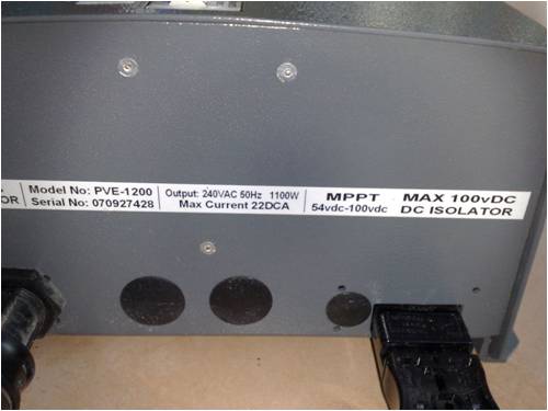 I have a redundant (used) Latronics PVE1200 (1200W) Grid Connect Inverter. It was installed as part of a new installation in September 2009 and has a current reading of approx 1600kWh. It was in working order when disconnected by the electricians doing the new install and comes complete with plugs for both panel and 240V leads. It's still in warranty - approx 4 years remaining.
