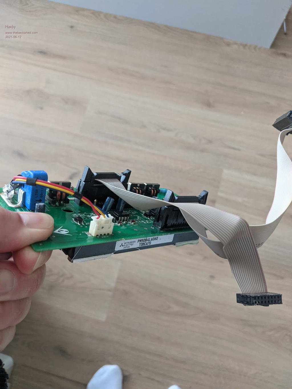 Mitsubishi PM50B4LA060 is the IGBT module part number. You can see the module in the first photo above poking out the bottom.
