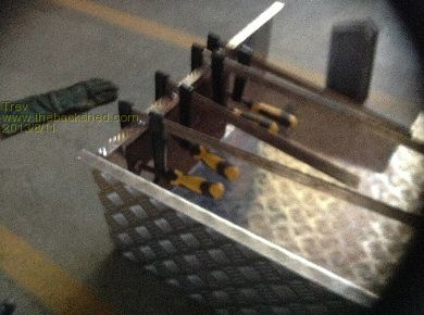 All are handled one at a time. Cells are clamped together using 6mm stainless steel threaded rod, 3 on each side. The font of the box is used as one end plate and the back end plate 3mm alloy checker plate with the top and bottom 10mm folded for stiffening. The centre end plate, is one plate, right across both centre rows of cells. So cells are clamped to the front of the box and down through the steel rails underneath. The cells cannot move.