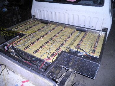 Your figures are particularly interesting when compared with the prices I've been getting in respect of a Prius plug-in / lithium polymer battery conversion. Apparently the plug-in conversion provides the ability to completely over-ride the factory computer which would normally start the petrol motor at speeds over 40k or whatever. I can't recall details of battery capacity however I have been assured by several different supposedly professional conversion businesses that $15000 will pay for installation of both the plug-in bits & sufficient batteries for 200k EV only range at 75 - 80k. Obviously I'll need to go back to them and check how many batteries are involved, but presumably its something less than you have in the Hilux. I'm guessing that the weight of a Prius is probably comparable to the Hilux, aerodynamics are certainly better, and the AC motor should improve efficiency a bit, consequently less battery capacity should return something like the same range as you are getting from the Hilux at same speed. According to Prius cab operators in both Brisbane & Cairns, the original Prius batteries are holding up extremely well, with the early Brisbane Prius cabs getting close to the end of their 6 year service life & still on original battery after 700 - 800,000km. I would have thought the charge / discharge cycles would have killed the batteries well before that. Any comments would be greatly appreciated.