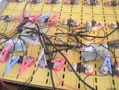The new battery is kept full with a 14.8v charger used as DC DC. An older prototype Relativities keeps the cells equal.