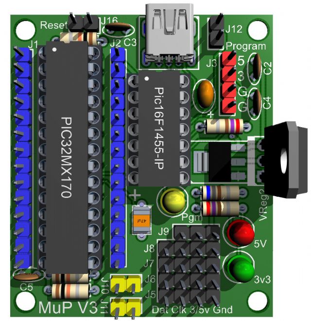 Whilst MuP2 was `almost' entirely Through Hole plated (just the VCap needed to be SMD) I have designed MuP 3 to be, optioned by the builder, to entirely THP if they wished or they can use the SMD VCap and/or SMD version of the Regulator.. The SMD VReg and TO-220 VReg are self exclusive, they can be one or the other.. NOT BOTH. Same for the VCap, it can be SMD or THP via the holes provided. The beauty is that there is no need for the ICSP header as your chip will handle any flashing of new MMBasic versions without the need for a PicKit3 or similar. Anyway MuP Ver 3 will be sent off for manufacture this week sometime. Kind Regards, Mick Mick's uMite Stuff can be found >>> HERE (Kindly hosted by Dontronics) <<< |
