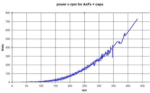 I have just looked at the numbers and at the moment, the piclog is not providing realistic numbers. There is a 200% variability in the power readings at a particular rpm. The 1 second timing window for the rpm measurement is most likely the problem. The power readings are probably accurate. The output is an increasing power curve with rpm, with cutin at around 60rpm, peaking at 600W at 500rpm. The loading at present is reducing at the higher power levels, so direct loading needs to be tested. This configuration would likely suit a decent VAWT. More testing will have to wait till I am over the FLU. Gordon. become more energy aware |