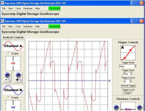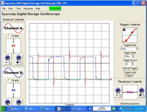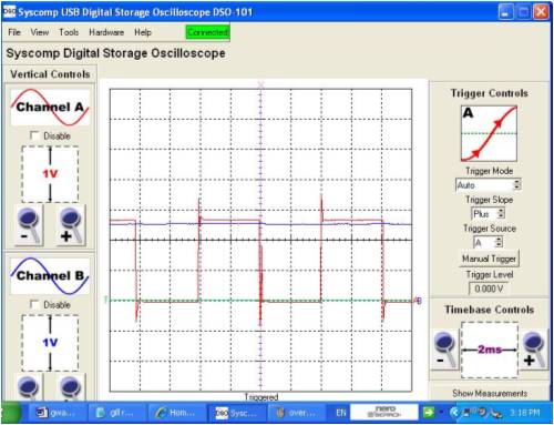 Hi Gill, I will present some DSO readings, [actual measurements, and not an attempt to draw what is thought to happen]. For clarity, in most of the tests, the waveforms are referenced to system [battery & grid inverter] -ve. I present, 1. a single phase, mill side of caps, with the DC voltage present at the upper connection of the voltage doubler as a reference. 2. the DC present on the top of the doubler with the DC present at the joining of the seriesed bridge rectifiers 3. the AC present on the top rectifier, with the DC voltage present at the joining of the seriesed rectifiers as a reference. 4. the AC present on the bottom rectifier, with the DC voltage present at the joining of the seriesed rectifiers as a reference. 5. the DC voltage present at the 24V battery with the DC voltage present at the joining of the seriesed rectifiers as a reference. 6. the between phases voltage just befor cutin. 7. the between phases voltage at an approx 250W power level. The doubler was functioning during all of these measurements. The windmill is a std F&P series 100, wired in delta. The windmill is only AC coupled to the loads. There is no DC path between the mill and the loads. The DSO probes are x10 settings. The ranges I have left shown for clarity. The green line is the zero reference line for both traces. This has been moved down to allow more visible use of the DSO screen. The timebase was free running, and not triggered. pic 1. pic 2. pic 3. pic 4. pic 5. pic 6. pic 7. I have provided the output waveform between phases before cutin as a comparison [pic 6], and that during a mid range power output condition [pic 7]. The capacitors do change the sine wave significantly. The flat topping that normally occurs with a battery loading is not evident. You will also note the strong correlation in voltage between the battery voltage and that present at the joining of the seriesed rectifiers [pic 5]. If there was "shorting", then this could not be. You will notice that the voltage present at the joining of the rectifiers is almost identically half that of the doubler output voltage [pic 2]. There is no bypass capacitance from the seriesed rectifier joining to ground. If there was any "short" that you describe, then this would be evident in the DSO traces. This would be manifested in some AC that would be visible, on the recorded voltages, primarily in the voltage recorded on the seriesed connection between rectifiers. If there is a short that you believe is there, then this somehow results in an increase in power supplied to the loads, with no discernable detrimental effects. You will notice the AC waveforms presented [pic 3, pic 4]. These are square wave in form and close to 50% duty. One waveform indicates power from 0 to half the doubler voltage. The other waveform indicates power from half the doubler voltage to the doubler voltage. These are in phase, so the voltages are additive. I cannot provide much more proof. The theory you present does not seem to be backed up in the measurements I have recorded. This may be due to the square wave nature of the voltage waveform, that reverse biases the diodes, you indicate are providing a short. I welcome anyone else to do the same types of measurements as I have and come to a conclusion that the cct will present a short. PS. I think you will find that a clue as to what is happening is given by the waveforms of pic 3 & pic 4. The voltages on the caps prevent the current from going the wrong way. The currents are steered through other diodes, and do not present a short. I give some more pics af phase/phase rectifier inputs. pic 8. This is one phase again, referenced with the voltage present at the join between the 2 seriesed rectifiers pic 9. This is the voltage traces presented simultanously, on the same phase, on the input to the top and bottom rectifiers. pic 10. This is the voltage traces presented simultanously, on different phases, on the input to the bottom rectifiers. pic 11. This is the voltage traces presented simultanously on different phases, on the inputs to top and other bottom rectifiers. PPS Again I see no evidence of cct shorting behaviour. There is a lower impedance path offered by the bottom rectifiers from the load and back to the AC, to complete the electrical cct. Gordon. become more energy aware |