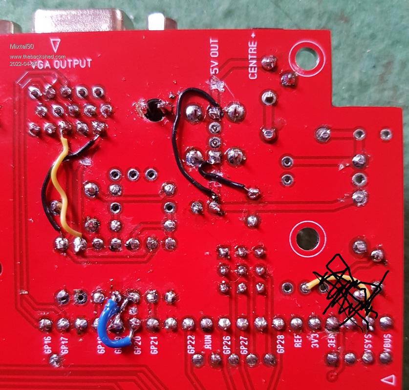 Here's the board mods, but only done on the "other" one. The crossed out mod is to do with re-enabling the SMPS so ignore it. The two crossed over black wires reverse the polarity of the USB-A socket, the rest fix the colours.