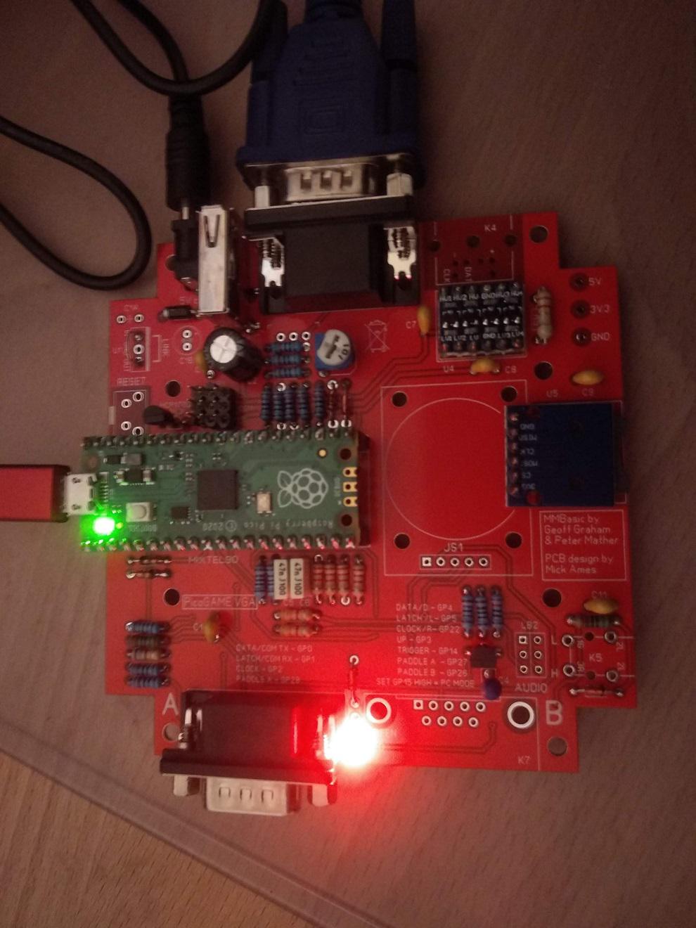 1. When I plug it in to the PicoGAME VGA it briefly lights all its LEDs (power, caps-lock, num-lock - I think) and then goes dark and unresponsive.