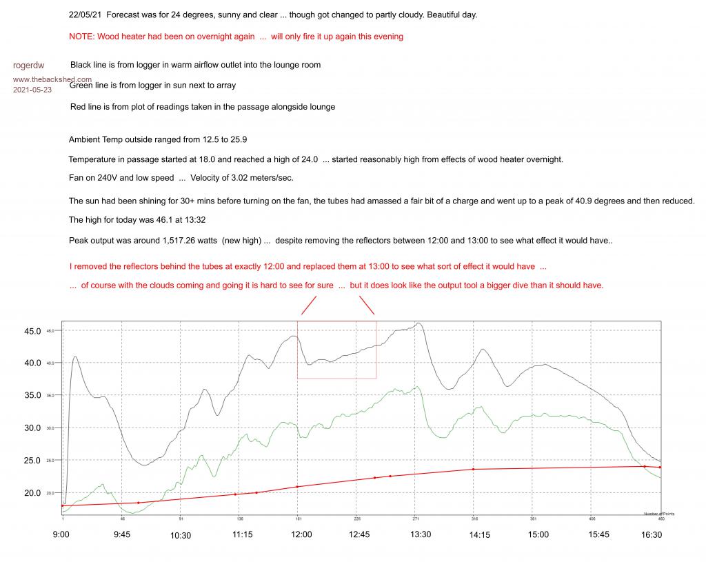 Quote  I was hoping to see a big drop in output temperature  ...  and we did  ...  but the outside temp in the sun also dropped at the same time due to cloud cover  ...  so is hard to say exactly just how beneficial the reflectors are.