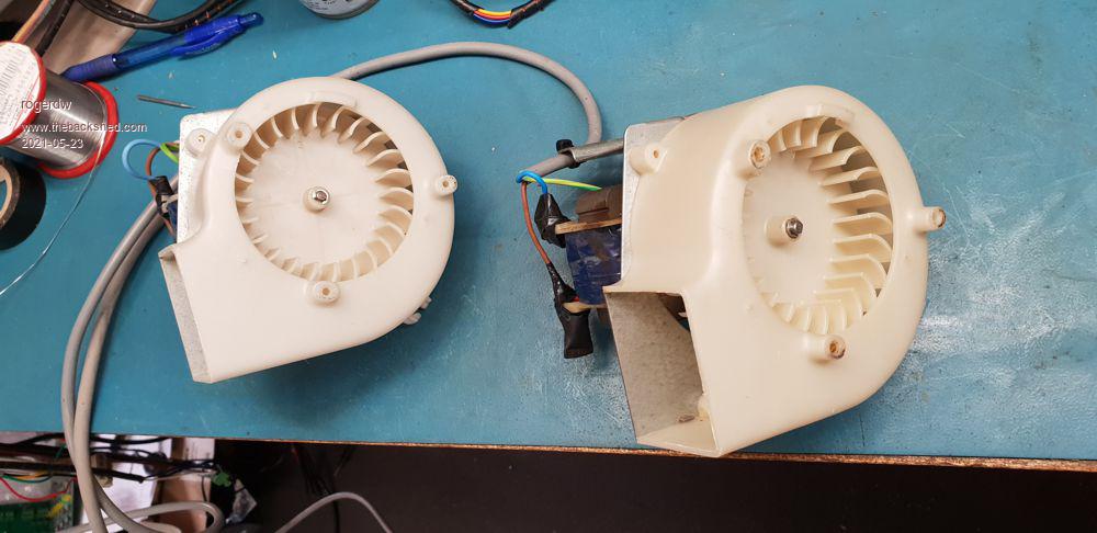 I've got a few other experiments in mind. I cleaned and wired up a couple of identical fans that I saved from wrecked microwaves years ago.
