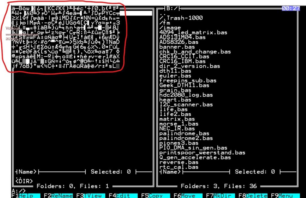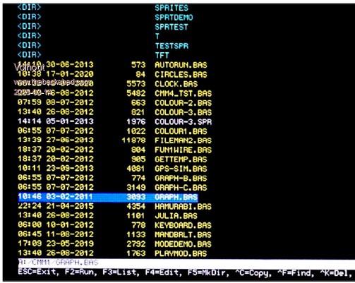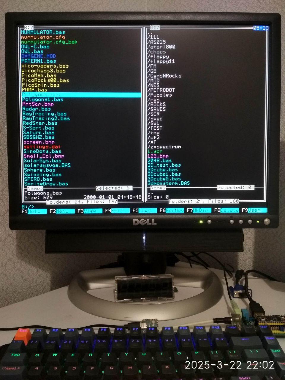 P.S. The 2 pane filemanager is of limitted use when there is no B:/ (as in many microcontroller platforms), so it's main use will be in the stand-alone basic computer platforms that have a screen and audio and SD card. The vt100 version is a niche product.