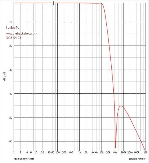 CPU frequency 48-251MHz - 44100Hz CPU frequency 252-377MHz - 88200Hz CPU frequency 378MHz -132300Hz I wonder how that will suit Volhout's filter using the inductor? It is tuned fairly closely to 44.1kHz and, looking at the response curve: ![]() It may not have the same effectiveness at the higher frequencies? But I believe that that particular curve was simulated without any effective series resistance (ESR) in the inductor. In the real world, they do have ESR which will lessen the depth and widen the breadth of the notch so... Bill Keep safe. Live long and prosper. |