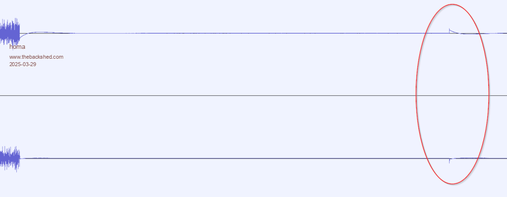 What Homa is seeing looks what I described as the risk of keeping the last PWM value, and not returning to 50%. ![]() The "tail" of the audio is the AC coupling of the sound card, compensating the DC of the non-50% dutycycle to zero. Then at resume, you have a charged AC coupling, that is driven by the new (silent ? around 50%) audio, and the capacitor discharges again, with shown result. ![]() Volhout PicomiteVGA PETSCII ROBOTS |