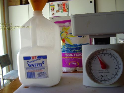I used a four liter bottle of water to 400 grams of ALUM by weight.
