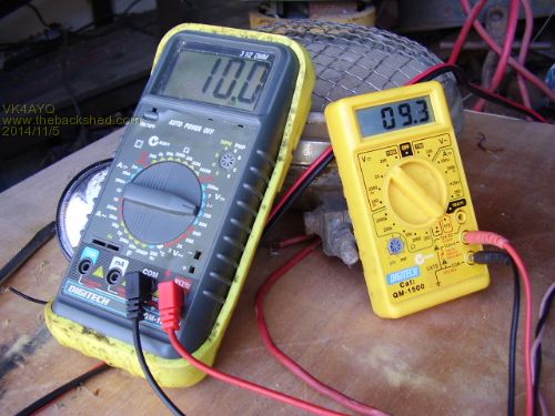 I just checked the battery and light, it has now been running for 19 hours and the voltage is down to 8.5 volts that's giving a reasonable light still, battery number one is holding voltage at 10.2 volts, no change over the last 24 hours, so I connected the light to it to see how it goes, it seems that the capacity has had an increase after the last cycling, not in my opinion to a useful level for power but I think the two batteries in parallel would supply all the light for the house using 3 watt CRE globes, maybe the exercise hasn't been a complete waste of time.