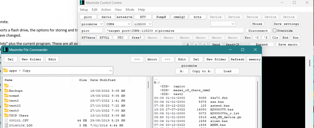 Now that the picomite supports a flash drive, the options for storing and transferring files between the picomite and your PC have changed.