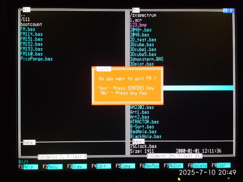 Hi javavi, If I am allowed to make a suggestion, It would be Nice if Some file information could be showed in the right side of the panel. The date/time is not universal available since not all picomites have an RTC. But a file size would be Nice. Just a suggestion. I am using your 1.51 on all VGA pico’s. Will Try 1.60 tomorrow. Volhout. PicomiteVGA PETSCII ROBOTS |