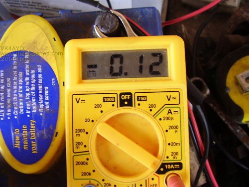 The battery is now connected to the pump batteries and I am waiting for a sensitive ammeter to measure cross current to see if it detracts from or adds to the use of the batteries a initial check with a multi meter showed a small charge current to bring the battery up to the 13.5 volt float but under load from the pressure pump I cannot detect any current flow back out of the battery when the pump cuts in, which I suppose is logical as the battery has a normal standing voltage of 10.5 volts against the lead acid batteries voltage of 13.5.