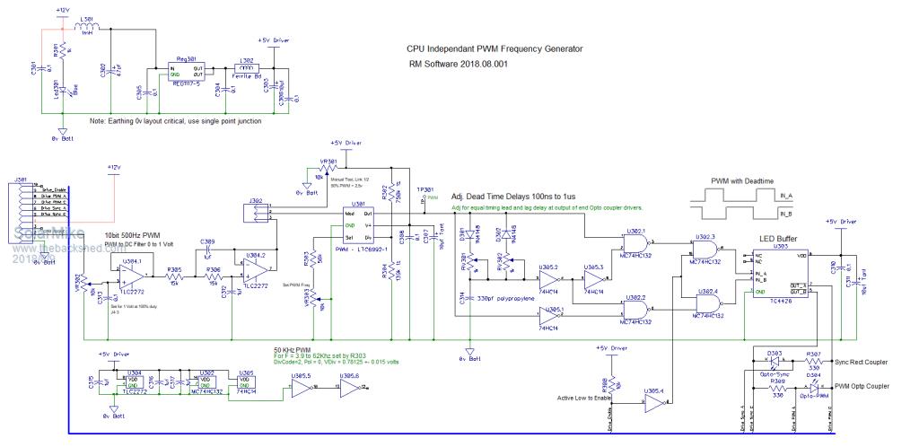 I think you are quite right about making the power board be able to work by itself. There are many reasons for that, including the possible explosive effects of a software crash if you decide to do some software tweaking later on. Just thought I would mention the PWM driving PWM idea, it tracks so remarkably well its a trick worth remembering. Cheers, Tony. |