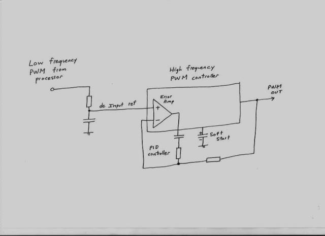In a a PWM driving a PWM situation, I have had great success comparing the duty cycles of both directly, and feeding the difference into a PID error amplifier. The error amplifier then ensures the output duty cycle follows the processor duty cycle exactly without any drift or non linearities creeping in. ![]() Cheers, Tony. |