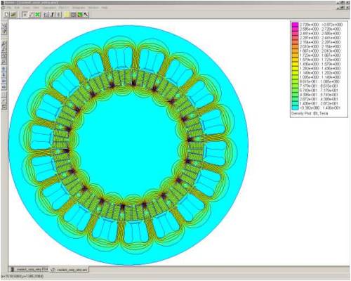 One more thing, something I neglected earlier to say to Oztules in this thread but which I'll mention now: be careful when you compare two different simulations to eachother just based on the colours. Standard, FEMM assigns other colours to the *same* flux density in different simulations. 'Autoscaling' it's called. This can bite you if you don't realize it. That's why I always include the colour legend in my simulations. You can also force FEMM to always use the same colours for simulations by specifying the lower and upper scale limits. Just a heads-up. The irregularities may be artifacts caused by FEMM. Judging by the output you're using automeshing to generate the grid. I normally don't use 'automesh' but determine the mesh-size myself. I also normally generate pretty fine meshes. This makes the simulation take a bit longer to calculate and show the results but I prefer the more detailed results. I agree with Oztules, I'd build the rotor just once, rewind just once and get it over with. After your first genny you probably have a desire to build a few more (if you're like the rest of us ) which still gives you plenty of opportunity to experiment. I so far haven't heard of anyone who could stop after his first genny. It's habit-forming...