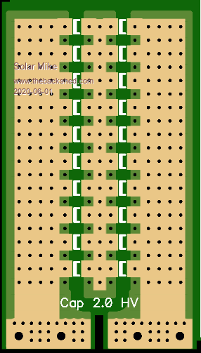 Last pcb done, its the low esr ceramic capacitor module, the pcb has 20 x 2 series in parallel to give me a higher voltage rating. Even good quality electrolytic's dont absorb high frequency spikes, the small module placed across the output caps makes quite a difference to the amount of EMI produced. I have a reel of 1000 1uf 100v caps and want to continue using them; the 250 volt and above 1uf ceramic caps are expensive, ones on AliExpress are most likely not voltage rated and not recommended here. Placing them is series has certain advantages if one shorts out, as the other prevents a melt down, when they short they usually burn holes in your pcb as they continue conducting current as they carbonize up. Placing them on a small pcb allows easy removal if this happens. All gerbers have been sent for manufacture, cannot wait... Cheers Mike |