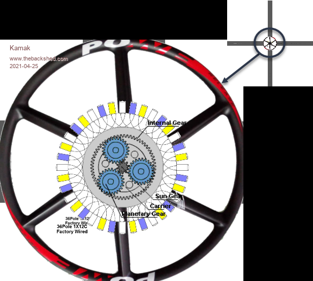 Back driving the planetary gearbox using the RING gear is possible, all be it with higher torque requirement, but possible with the right sized turbine blade lengths, combined with the larger diameter Blade-Hub (ie. a 29" bike rim) 10:1 Ratio = 100rpm Blade-hub:1000rpm Rotor ![]() ![]() Edited 2021-04-25 05:28 by Kamak |