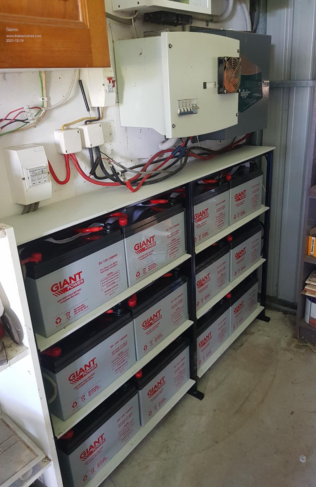 Warpspeed I think you would need some bleed resistors across the input diodes so the charge regulator can measure the battery voltage, and get power, after dark. Plus the diodes would need to dissipate some serious watts. My batteries have arrived and its all assembled. The leads are equal lengths for each series. I have a 100amp circuit breaker per series. ![]() I'll keep an eye on it and check the currents for each string under charge and under load. A difference in current between strings will be a good indicator of uneven batteries, something a microchip with wifi could monitor. Glenn The best time to plant a tree was twenty years ago, the second best time is right now. JAQ |