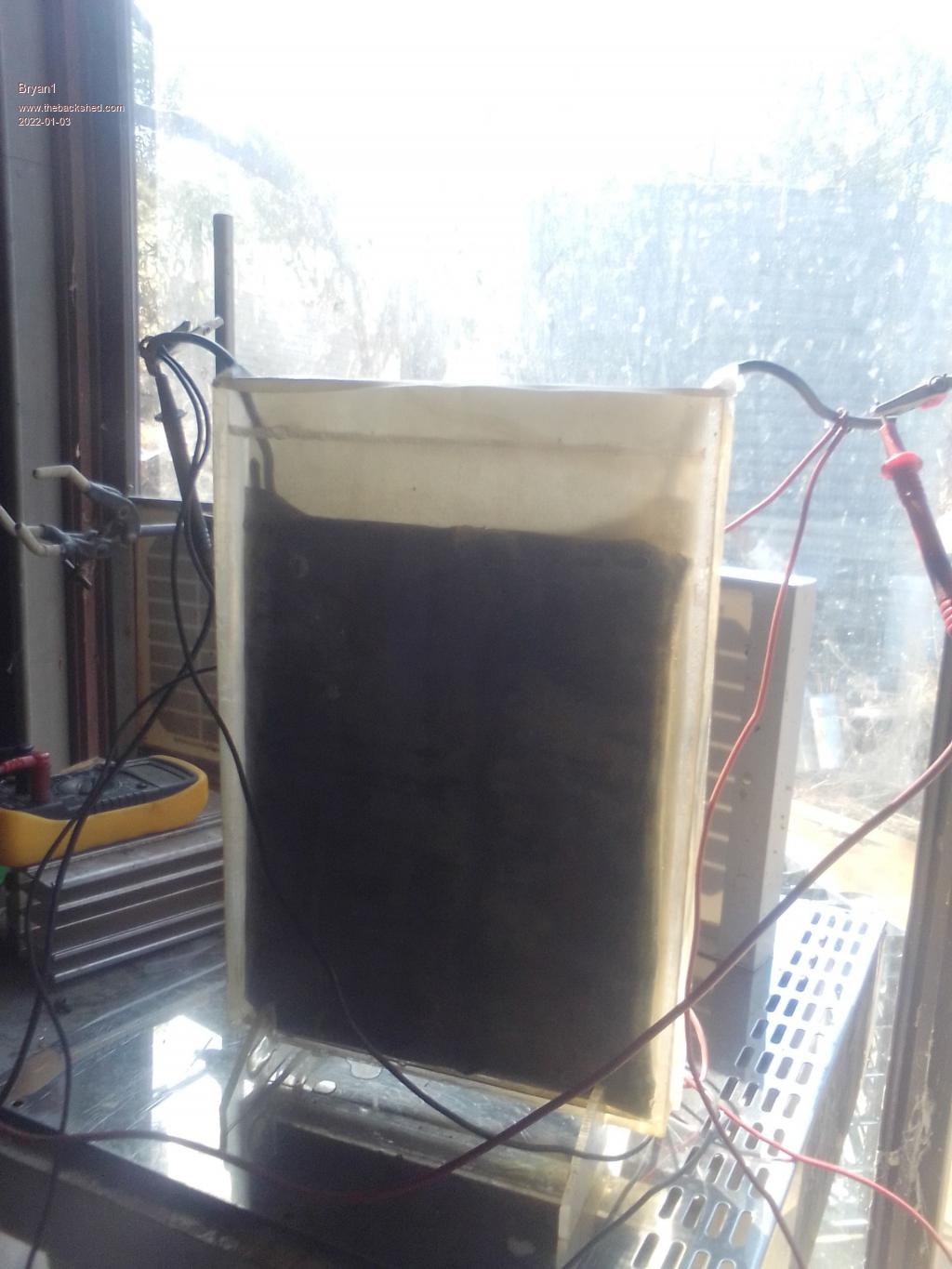 Connected that motor and got the voltage down to 0.2 volts so removed the plates and washed them then out in the sun to dry.