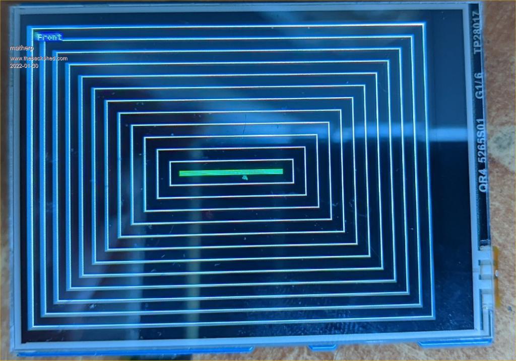 Thanks I have OPTION SYSTEM spi GP10, GP11, GP12 OPTION TOUCH GP16, GP17 OPTION LCDPANEL ST7789_320, RL, GP8, GP15, GP9, GP13 OPTION SDCARD GP22 when I do GUI CALIBRATE I get Deviation X = 2, Y = 0 (pix When I run my program I still get the screen wiped out from the start point for text across to the right and down to the bottom. My test program is dim integer num, widt=320, leng=240 cls backlight 80 for num = 0 to 120 step 10 box num,num,widt - num*2,leng - num*2,1,rgb(white) next num Text 5, 5, "Front", L, 8, 1, RGB(yellow), RGB(BLue) line 118, 118, 200, 118, 4, rgb(green) end Is my screen rotation the issue? Thanks |