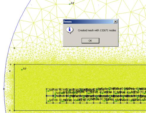 Steven, Pity you can't find it anymore, was curious to the results and how you had presented/combined them. The reason I asked is because I've been looking a bit into 3D FEM magnetics packages lately (but didn't find anything of use). For 90+% of cases 2D FEMM is fine, but there are instances where the 3rd dimension could reveal some extra information; plus it'd get rid of having to correct the models for end effects. One thing you have to keep in mind is that your '2.5D' simulations won't be real 3D, as it doesn't model the interaction between the various layers/slices (i.e. in the 3rd dimension). No tool is perfect and we have to make do with what we have. Can't complain of course, FEMM is a sheer joy to work with, incomparable to some other (mechanical) finite element packages I worked with in the past. [quote=Steven] I was about to ask how you got FEMM to make the mesh so fine, then as I was drawing my own I realized that the gap raised the number of nodes throughout the model from 500 to somewhere like 20,000.[/quote] There's an easy way to modify mesh density; when adding a property to your model (pressing 'space') you can let FEMM generate a mesh itself (automesh) or you can overrule and specify a minimum mesh density. I normally overrule the setting and set mesh to '1' (in the case of the Halbach array it was even set to .4 for better resolution). This of course drastically increases the number of nodes and calculation time. Most of the models had between 100.000 and 200.000 nodes. I've modeled the 10hp conversion in the past and that one had over 300.000 nodes, IIRC. I usually let the PC work overnight on these things. Recently I've begun differentiating a bit more between areas that I want full resolution and those that can stand lower resolution. This usually drastically reduces number of nodes and computation time. The final model (Halbach array) was optimized for this and had 'only' 132.000 nodes: