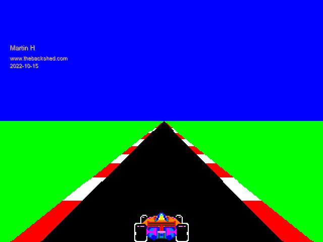What fun! Here's a modification to include a track. At the very end is a data block that encodes the track. You can change it for any course you might like. I'm not sure if I have the sky movement correct. I don't have an SD card connected, so I can't load the sky graphic to test. autosave Dim Col%(15),Xofs%(2,160) Restore colors:For f%=1 To 15:Read Col%(f%):Next f% 'SH% and SW% Displayresolution 'SH%=240:SW%=320 - use MM.HRES and MM.VRES instead dist%=0:Speed%=20 Option Break 4: On Key 3, on_break MODE 2 FRAMEBUFFER create FRAMEBUFFER WRITE F read_sprites 'Precalc the Curve For f%=0 To 159 Xofs%(1,159-f%) = ((160*Exp(f%/50))/20)-8 Xofs%(2,159-f%) = -Xofs%(1,159-f%) Next 'Precalc the Bordercolors Dim Bcol%(6,120) For dst%=1 To 6:For f%=0 To 120 bcol%(dst%,f%)=col%(7-3*((Sin((((120-f%)/40)^3)+dst%))>0)) Next :Next :dst%=1 ' CLS COL%(1): Load image "sky.bmp" HW%=MM.HRES/2:HH%=MM.VRES/2 '-------endless loop ----------------------- ' n is degree of bend n%=0 ' current curvature - start off straight t%=Timer:fcnt=0 Do Read turn%,dur% If dur% < 0 Then t%=(Timer-t%)/1000:Text 1,1,Str$(fcnt/t%,3,3) ' show framerate t%=Timer:fcnt=0 Restore TrackData Continue Do ' restart the track EndIf If n% < turn% Then ' adjust curvature towards left For i = n% to turn% Step Speed%/dur%*100 DrawTrack i:do_car:Mov_sky -Sgn(i):FRAMEBUFFER COPY F,N:inc fcnt Next n%=turn% ElseIf n% > turn% Then ' more to right For i = n% to turn% Step -Speed%/dur%*100 DrawTrack i:do_car:Mov_sky -Sgn(i):FRAMEBUFFER COPY F,N:inc fcnt Next n%=turn% Else ' continue along path For i = 1 to dur% 'Step -Speed%/dur% DrawTrack n%:do_car:Mov_sky -Sgn(n%):FRAMEBUFFER COPY F,N:inc fcnt Next EndIf Loop '------------------------------ 'b1x% left x position of the left Border 'b2x% right x position of the left Border and left x position of the street 'b3x% right x position of the street and left x position of the right Border 'b4x% right x position of the right Border 'BB% Border broad 'bc% Border Color (red or white) calculated over Sinus Function 'HH% Half Screen y-Res HW% Half Screen x-Res 'xofs%() Pre calculated Curve over Exponetial function 'ofsx% how much has the Curve to be bended Sub DrawTrack curv Box 0,hh%+2,MM.HRES,hh%-2,,COL%(2),COL%(2) For F%=2 To HH% bc%=bcol%(dst%,f%):ofs%=xofs%(2,f%)*curv/100:y%=hh%+f%:BB%=f%/4 b1X%=HW%-F%-bb%+ofs%:b2x%=HW%-F%+ofs% b3x%=HW%-F%+ofs%+2*f%:b4x%=b1x%+(2*bb%+2*f%) Line b1x%,y%,b4x%,y%,,bcol%(dst%,f%) Line b2x%,y%,b3x%,y%,,0 Next Inc dst%:If dst%>6 Then dst%=1 End Sub '--- Moves the Sky while driving a curve Sub Mov_sky dir% Local mv1%=1,mv2%=2 If dir%=0 then Exit Sub ' driving straight so sky doesn't change ' need to adjust time to draw nothing EndIf If dir%>0 Then Sprite read #31,0,28,mv2%,22 Sprite Mv2%,28,0,28,320-mv2%,22 Sprite write #31,320-mv2%,28 Sprite read #31,0,50,mv2%,22 Sprite Mv1%,50,0,50,320-mv1%,22 Sprite write #31,320-mv1%,50 Sprite read #30,0,102,mv2%,10 Sprite Mv2%,102,0,102,320-mv2%,10 Sprite write #30,320-mv2%,102 Else Sprite read #31,320-mv2%,28,mv2%,22 Sprite 0,28,mv2%,28,320-mv2%,22 Sprite write #31,0,28 Sprite read #31,320-mv2%,50,mv2%,22 Sprite 0,50,mv1%,50,320-mv1%,22 Sprite write #31,0-mv1%,50 Sprite read #30,320-mv2%,102,mv2%,10 Sprite 0,102,mv2%,102,320-mv2%,10 Sprite write #30,0,102 EndIf 'Sprite CLOSE 31 End Sub Sub do_car If dist% Mod 2 Then Sprite write #1,132,200 Sprite write #1,160,200,1 Else Sprite write #2,132,200,1 Sprite write #2,160,200 EndIf End Sub Sub read_Sprites Local nr%,p%,n%,byt$,m$ '--- Read/Create Sprites Restore car For p%=1 To 31 Read Byt$:Byt$=expand$(Byt$) For n%=1 To Len(Byt$) m$=Mid$(Byt$,n%,1) Pixel n%-1,p%,COL%(Val("&H"+m$)) Next Next Sprite read #1,0,0,28,32 Sprite read #2,28,0,28,32 End Sub Function expand$(pxl$) Local n%,nmb%,tmp$,co$ For n%=1 To Len(pxl$) If Asc(Mid$(pxl$,n%,1))< 71 Then ' asc("G") = 71 tmp$=tmp$+Mid$(pxl$,n%,1) Else ' run length encoded - 1st char is pixel colour+71, 2nd is count-1 co$=Hex$(Asc(Mid$(pxl$,n%,1))-71) Inc n%:nmb%=Val("&H"+Mid$(pxl$,n%,1)):tmp$=tmp$+String$(nmb%+1,co$) EndIf Next expand$=tmp$ End Function Sub on_break Sprite CLOSE all: FRAMEBUFFER CLOSE MODE 1: Option Break 3 End End Sub colors: '--Colorscheme accordung to matherp Data RGB(BLUE),RGB(GREEN),RGB(CYAN),RGB(RED) Data RGB(MAGENTA),RGB(YELLOW),RGB(WHITE) Data RGB(MYRTLE),RGB(COBALT),RGB(MIDGREEN),RGB(CERULEAN) Data RGB(RUST),RGB(FUCHSIA),RGB(BROWN),RGB(LILAC) car: Data "GFGFGFG7","GFGFGFG7","GFG9P3GFG9","GFG8917719GFG8","G8N3GA91J319GAN3G8" Data "G7788087G5EECF11M311FCEEG5780887G7" Data "G678FF00800FDCFC48F11M311F84CFCDFG77G6" Data "G67G5DD4U2C4B107M3701B4CU24DDG2FF07G6","G67G4U6C4B107M3701B4CU6G47G6" Data "G67G3U8AB1U71BAU8G37G6","G67G2U24CU4AAU9AAU4C4U2G27G6" Data "G6700U3KFKBU3007G6","00N5U54OFO94U5N500","07788G6EEKFKBEEG688770" Data "078G9E4OB44OB4EGA70","0700FF0V3001KAEK3EKA1GA70" Data "07GA14HAK3HA4100V30FF0070","07GA14019R255911K311955R291041GA70" Data "07GA5119R2L2911K3119L2R29115G9770","07GA551R3L2911K3119L2R3155G9770" Data "07GAL99V79L9G9770","077G9L99V79L9GA70","077G9551R3L29B8R38B9L2R3155G9770" Data "077G9519R3L29B891198B9L2R3915G9770" Data "07GA919BB9H259B891198B95H29BB919GA70","07GA791BBH49B8R38B9H4BB197GA70" Data "07GA70819H49B8R38B9H491807GA70","07GA7G2H489O9H5007GA70" Data "078G887G4H2GBH2G478G8870","0778G6877GFGB778G68770","00NAGFGDNA00" TrackData: ' encoded track ' first value is amount of curve, negative = right, 100 is just off screen ' second value is duration of segment, negative = end of track, restart Data 0,200 ' straight for a bit Data 50,500 ' start turn to the left Data 50, 50 ' hold turn to the left Data 0,400 ' return to straight Data 0, 30 ' straight for a bit Data -100,1000 ' turn to right Data -200,500 ' turn even sharper to right Data -100,300 ' reduce right turn Data -10,500 ' reduce turn even more Data -10, 25 ' hold gentle right turn Data 200,250 ' turn hard left! Data 0,200 ' return to straight Data 0, 50 ' straight for a bit Data 100,150 ' turn left - chicane Data 0,100 ' return to straight Data -100,100 ' tu
