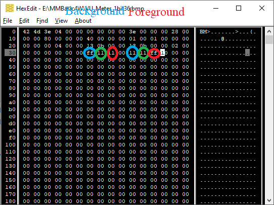 The BMP format supports 24 bit background and foreground colours for 1 bit / pixel images. Most viewers, including MMBasic will display them correctly however most editors only allow black and white.