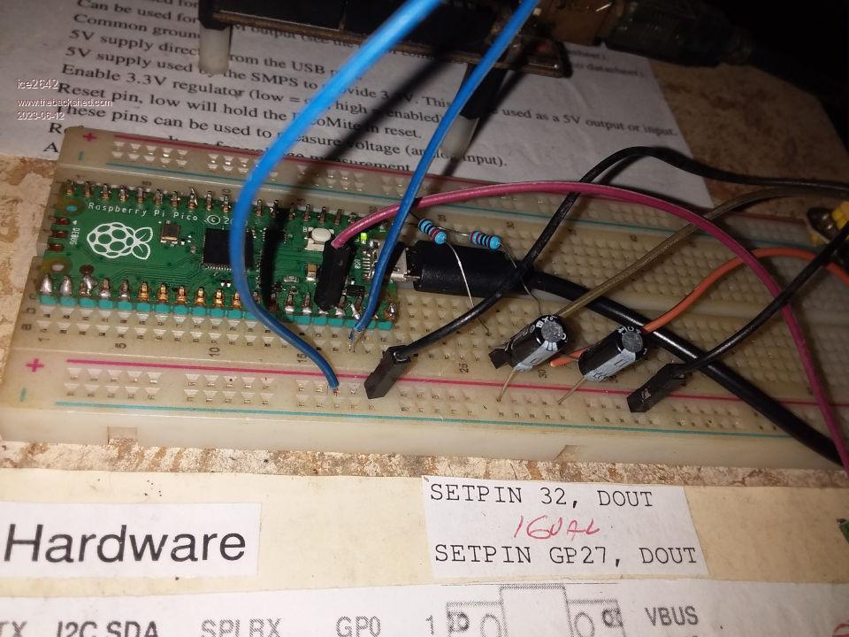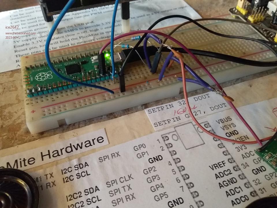 Mixtel90 said  For the actual I2C DAC all you need to mount is the chip, 2 resistors and 2 capacitors (although I'd recommend a resistor and capacitor to filter the supply as Peter did on the V1.1 board). That board will then pick up GND, 3V3, CS, MOSI and SCK from your Pico board. If you get a suitable connector you *might* be able to make it into a module that fits whatever GPIO connector is on your Pico board. It would then have GND, Left and Right running to your amplifier. It might be an idea to make this a 3.5mm jack but you don't have to.