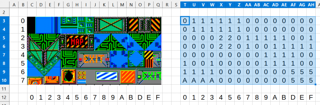 Volhout, As I see it so far, there are several things that can be hidden. The map, the drones that keep your back free and the increase in weaponry. I should be able to implement the assignment reasonably quickly. There is a maximum of 128 tiles per level. In the original game, the tiles are twice as big, so I always have 4 together, which have the same properties. I'll probably manage that at the weekend. Then adapt the scroll mechanics so that you can move the player using the buttons. I just have to make sure that the player moves all the way to the edges. So his position on the screen is not fixed, unlike in Petrobot. The drawing of the enemies is progressing and the tiles and map for level 3 are also finished. ![]() Cheers Martin Edited 2024-02-17 04:22 by Martin H. 'no comment |