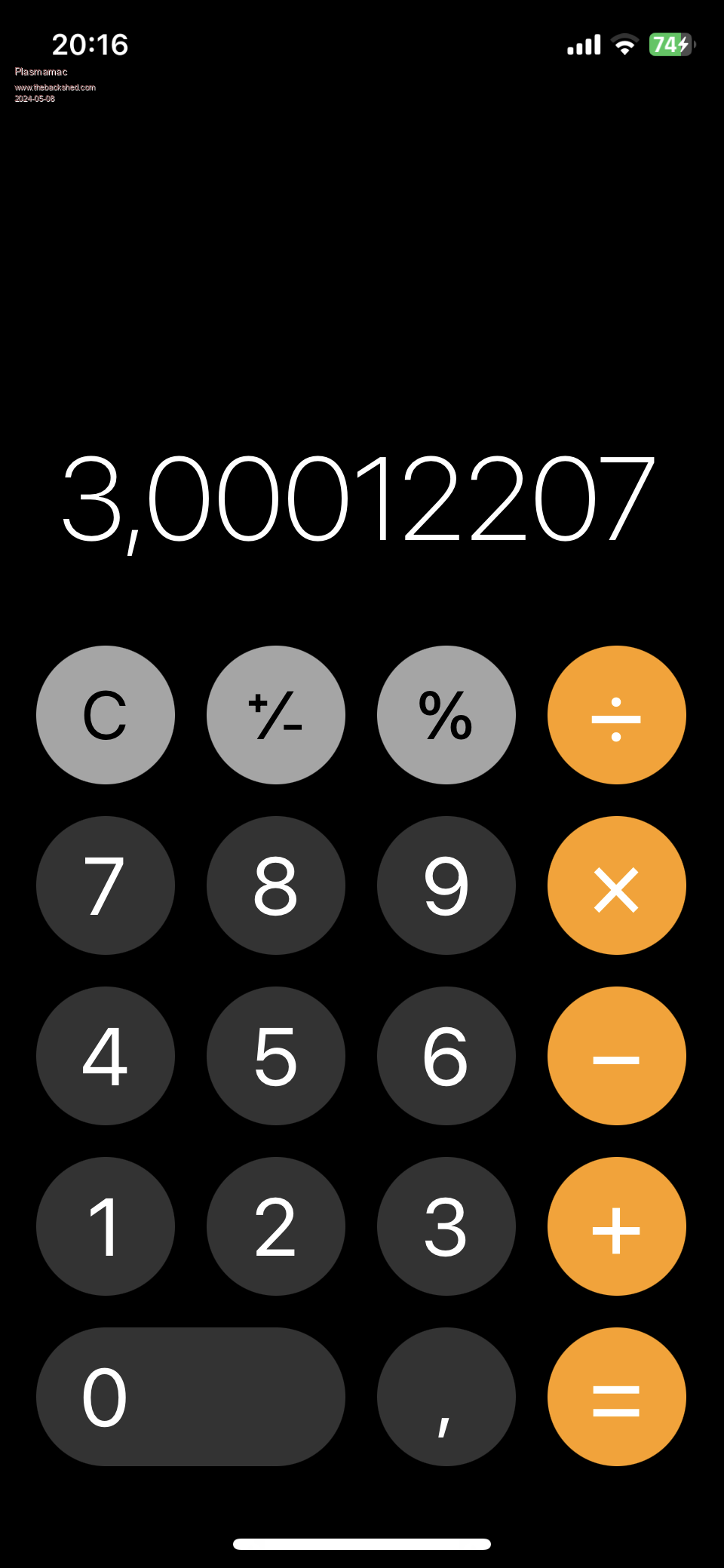 is calculated by MMbasic as 3.001953125