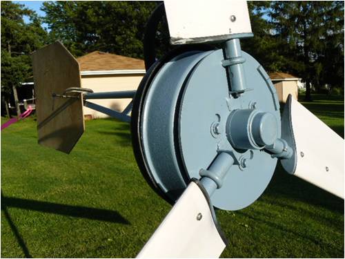 On home-made blades and fastening them: Having viewed the tensile "parting" specs on T-6 aluminum one thing I can tell you is it actually gets stronger just before it parts. This is why I make all my blades out of solid aluminum. I don't worry about airfoil or drag; I merely let the flat blade bite the wind and that's that. One thing I should mention is; the longest blade I currently manufacture and use is 3 feet long. That makes the total sweep a little over 6 feet (diameter). My "normal" length blade is only 24 to 30 inches. Many years ago, I manufactured a "Clark Y" out of sheet aluminum and was able to twist the thing so the tip ran with almost no pitch, while the root was set at 45 degrees. If anyone is interested in doing it this way, say so and I'll throw up a tutorial. By the way, in those days, I ran 7-foot blades in a Jacobs (three-blade) fashion and each blade weighed in at less than a pound. The root was through-bolted with massive solid-aluminum plates to discourage wandering. I used (and still do) a solid aluminum hub plate and twist the tangs to achieve pitch. There was also an aluminum tube that ran up the center just under the apex of the airfoil to discourage bending when the tail spun the turning blades across their axis of rotation. The tube was pop-riveted to the blade. My thinking is that if the blades are manufactured on the order of a pinwheel (lightweight and balanced), the forces of nature will have to get really out of hand before any trouble arises. My solid-blade design would have to spin faster than any wind will make them go before they even approach parting speed. Oh, by the way, solid aluminum blades make a rather awesome "gong" sound when a bird isn't paying attention! To give equal time, a careless bird can really wreck a hollow Clark Y blade! Another "feature" of a hollow blade is they tend to "pump" a stream of air through the center of the thing and out the tip. This somehow spoils some of the noise in high winds. Nothing difficult is ever easy! Perhaps better stated in the words of Morgan Freeman, "Where there is no struggle, there is no progress!" Copeville, Texas |