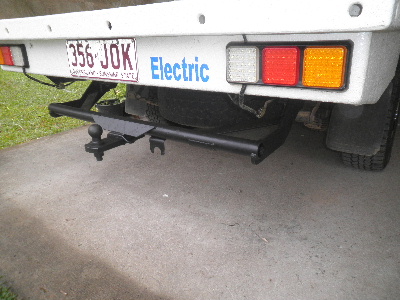 Some more changes with the EV Hilux. The test samples of the equalizer circuits have arrived and so needed to work on re mounting the 2 Zivan chargers. They used to be under the bonnet, but I had trouble with one (the first and so was the oldest). It eventually stopped working due to water ingress and dust. I bought a new one. The 2 Zivan chargers are now mounted behind the drivers seat. No more water and dust. The Zivan charger has an open/closed circuit in the end (facing up in the picture below) that can be used to switch on the equalizer cicuits, when the Zivan charger reaches trickle phase. This is now connected as well. I just need to get a different relay to make it work. These equalizer circuits have been improved. They have an output of 4 amps, but also are physically bigger as well. These 2 have been tested and worked well. I have ordered a commercial quantity. Also have fitted the original towbar back on. First cleaned and painted. With this towbar fitting, I had to cut the fibreglass back to allow room where the towbar bolts on. Trev @ drivebynature.com |