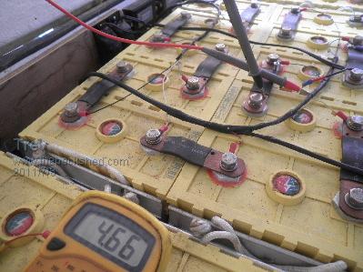 Some more to add about the DC/DC equalizer system testing. These samples I have sealed them up and mounted in the battery box. Tested well for a while but then they stopped working. I put the multi meter in the output wire to see how much current, if any, was flowing. They worked well, too well, more amps then they are supposed to put out. The pic below shows 4.66 amps. I had seen as high as 5.8 amps, at one stage. But then, take the multi meter out of the circuit output wire and they did not charge. It was found that they only worked with a small resistance. So I calculated the resistance provided by the multi meter - 0.047 ohm or so. The smallest resistance I could find was 0.1 ohm. It worked, but cut the current back too far, back to 2.4 amps. I have requested that the manufacturer add a small resister to the output of the circuits. This is charging the low volt cells from the higher volt cells.(far better than the 0.6-0.8 amps that some burn off systems have from other manufacturers). Trev @ drivebynature.com |